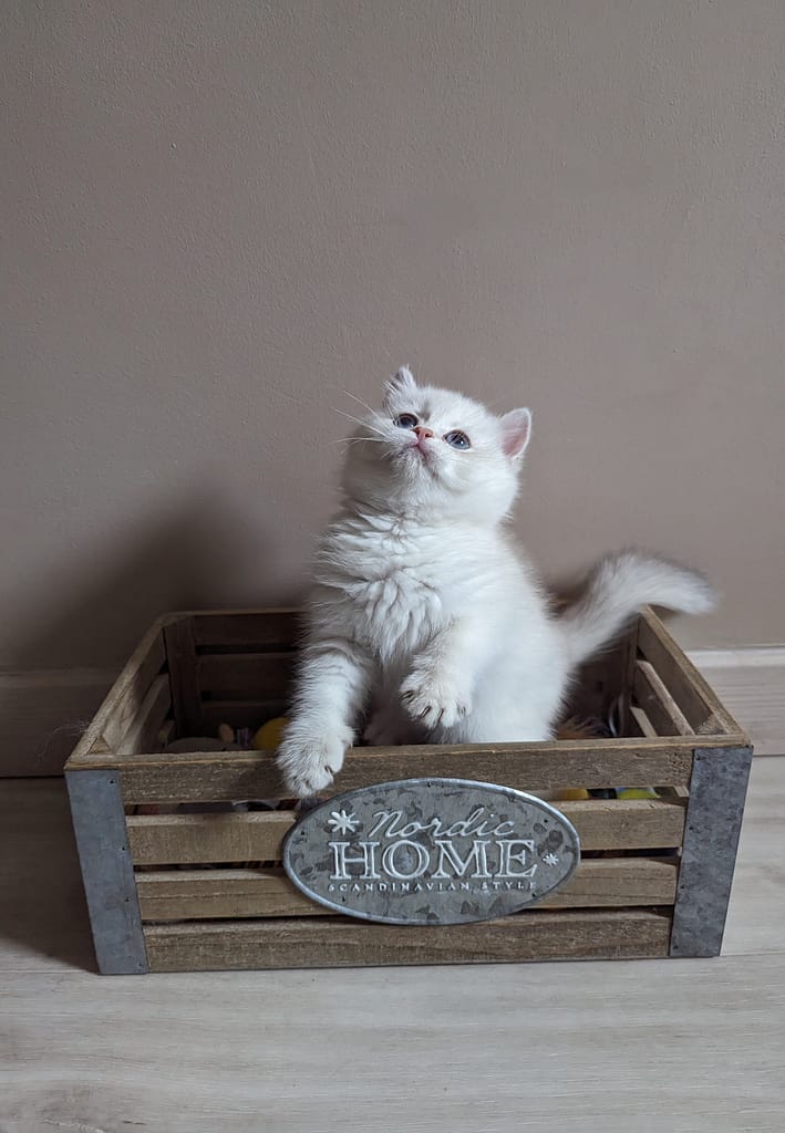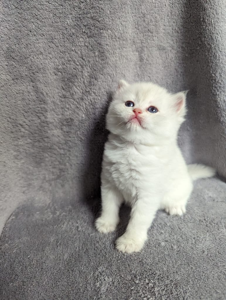 Zolie, une femelle British aux yeux bleus envoûtants, est une véritable pépite au sein de notre élevage. Son charme naturel et sa personnalité espiègle en font une compagne de jeu idéale pour les familles actives. Avec Zolie, chaque jour est une aventure remplie de câlins et de rires.